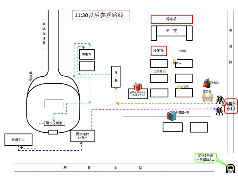 参观内容:高能所博展馆、直线加速器隧道、储存环隧道、北京谱仪及控制室、计算中心、北京同步辐射装置。其中直线加速器隧道、储存环隧道、北京谱仪于11:30停止进入。