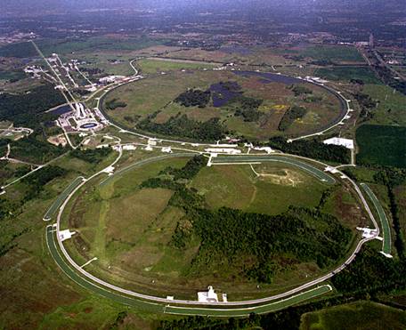 Tevatron:接收从主注入器来的150 GeV的质子与反质子,并将其几乎加速到1000 GeV。质子与反质子按相反的方向在Tevatron里运转,速度每小时仅比光速慢200英里。质子与反质子束流在Tevatron隧道中的CDF和D0探测器的中心部分发生对撞,爆发式地产生新粒子。