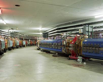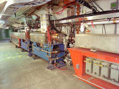 直线加速器:直线加速器是产生带负电的氢离子是产生质子和反质子束流的第一步。费米实验室的第一个直线加速器建于1971年,最初加速粒子高达200 MeV。1993年进行了升级,由9个加速节组成,长约500英尺,可将预注入器中产生的带负电的离子加速到400 MeV,或大约光束的70%。束流从直线加速器出来,经中能输运段进入增强器。