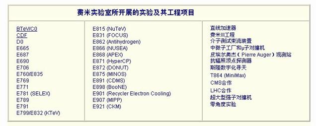 未来几年在粒子物理上的发现将改变粒子物理的研究方向,而这些发现的最佳机遇则可能存在于费米实验室所开展的以下实验中: