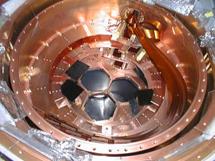 超导高频技术是一种加速粒子束流的高效方式。它由超导金属铌组成单元,并像空心珍珠串在一起。这些单元以所有可能的方式进行抛光,不带一粒灰尘或在形状上没有丝毫差别。几个腔安放在被称为超导加速单元的容器内,超导加速单元在液态氦中进行冲洗,并保持在超冷温度下,这对它们的运行和效率是关键。