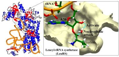 10.氨酰-tRNA合成酶(aaRSs)在蛋白质翻译过程中至关重要,催化特定的氨基酸附着其同源tRNA基因。为了确保正确的氨酰-tRNA的形成,从而提高翻译的可靠性,IBS的科学家们研究了一种亮氨酰-tRNA合成酶(Leucyl-tRNA synthetase)。论文发表在2010年3月的《美国化学学会杂志》上。
