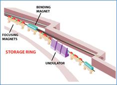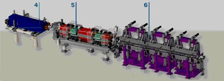 储存环部件示意图:4.偏转磁铁;5.聚焦磁铁;6.波荡器