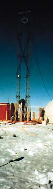 ZEUTHEN的科学家负责开发、建造和测试用于定时校准的光传感器、激光驱动光源、探测超新星爆炸用的专门电子学设备、南极的数据获取系统、模拟被测量的事例,当然也包括分析所采集的数据。(左图为钻塔)