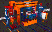 H1旨在探测和测量HERA的电子和质子对撞相互作用发射出的高能粒子和喷注,重点识别这些粒子,特别是电子和μ子。对H1合作组的科学家和工程师们来说,量能器(左图)的设计和建造是最具挑战的任务之一。喷注的能量是利用液氩电离室靠稳定可靠的技术加以确定的。相互作用区的周围是量能器,这样实际上任何粒子都会被探测到。另外,它分为很小的单元,以便喷注在空间很好地定位。带电粒子的轨迹在各种丝室中测量。可以测量沿轨迹的点,精确度达到十分之一毫米。用这种方法,可确定磁场中轨迹的曲率,从而可以计算粒子的动量。相互作用产生的数据流巨大。通过采用最先进的技术对数据流进行仔细过滤和分类后,将所得到的信息储存起来,以便今后进行分析。
