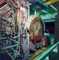 日本KEK和美国SLAC建造了专门的正负电子储存环(又称B工厂),每个都有台探测器。DESY决定利用HERA的质子束流, 并建造HERA-B探测器。建造HERA-B探测器在技术上是个挑战,因为与以前的正负电子探测器相比,HERA-B没有样机。因此,必须开发和测试崭新的探测方法。这特别意味着到目前为止前所未有的抗辐射的探测器部件,和每秒要处理相当通过德国电讯整个网络信息量的电子学数据获取系统。很明显,在2000年两个B工厂的实验很快达到目标,所以HERA-B组决定利用他们的探测器研究其它的物理问题。但所取得的进展是为将来实验所做的开拓性的工作,即CERN 正在建造的LHC的实验。2001年HERA-B开始了新的物理计划。探测器在2002年11 月至2003年2月成功地记录了3.5亿个高能质子对撞“事例”。这标志着HERA-B取数据结束,合作组将集中全力进行数据分析,重点放在涉及强力的问题上,例如从粲夸克来得粒子是如何在原子核内部产生的,在原子核里如何与其它物质相互作用。故HERA-B数据使物理学家能够接触到以前其它实验不能达到的领域。(右图为HERA-B 量能器) |