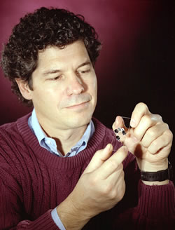 从稳定的电磁型同位素分离器浓缩的同位素所产生的放射性医用同位素,包括用于治疗前列腺癌的钯103、心脏成像用的铊201、治疗癌症和手术后心瓣再狭窄用的铼、肿瘤成像用的镓67和缓解转移性骨痛的锶89。非医用产品包括用于电子学和探测爆炸物的镍63以及用于地球定位和蜂窝式电话系统用的原子钟的镓87。1998年以来,电磁型同位素分离器一直处于备用状态直到需要为止。右图:Russ Knapp领导开发了铼188生成器。在这种生成器里,钨188衰变为铼188。它被用来治疗心脏病人的心脏狭窄和癌症引起的疼痛。