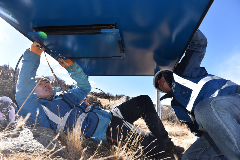 已投入试运行的第一批33个电磁粒子探测器(海子山观测基地)