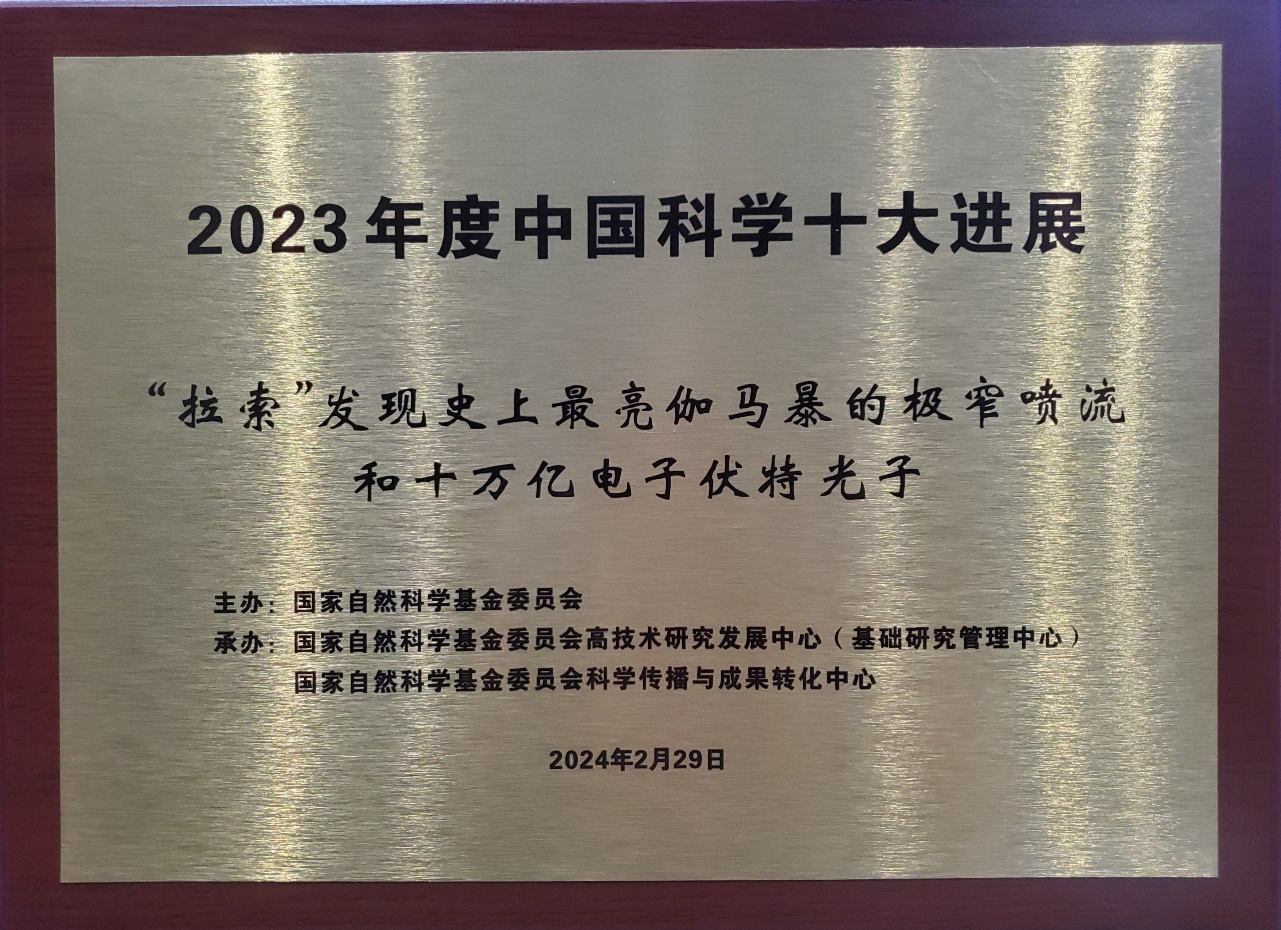 2月29日上午,国家自然科学基金委员会发布了2023年度“中国科学十大进展”,该进展主要分布在生命科学和医学、人工智能、量子、天文、化学能源等科学领域。由快盈v3曹臻院士领导的高海拔宇宙线观测站(简称“拉索”,英文LHAASO)国际合作组发布的重大进展--“拉索”发现史上最亮伽马暴的极窄喷流和十万亿电子伏特光子--入选。