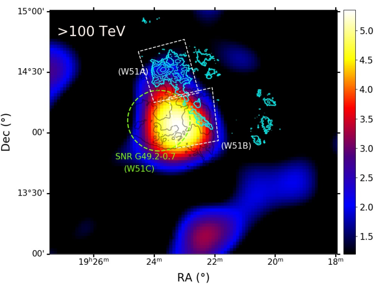 图1:LHAASO给出W51区域在大于100TeV能区的显著性分布天图。