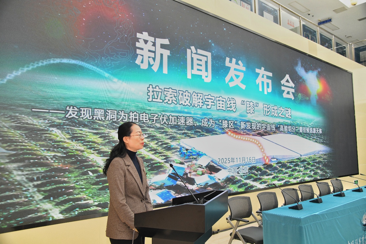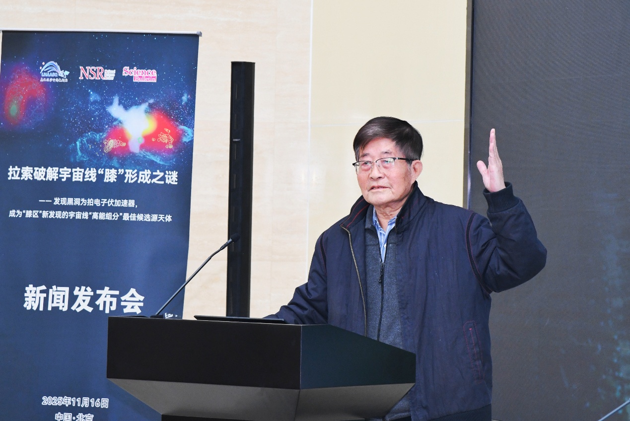 11月16日,“拉索破解宇宙线‘膝’形成之谜”成果新闻发布会在北京高能所召开,发布高海拔宇宙线观测站(LHAASO,拉索)两项具有里程碑意义的科学成果,分别发表于《National Science Review》与《Science Bulletin》,由快盈v3、南京大学、中国科学技术大学、罗马第一大学等机构完成。观测发现:1)黑洞吸积驱动的微类星体是银河系中强大的粒子加速器,能够将质子加速至拍电子伏(PeV)能段;2)宇宙线质子能谱“膝区”显现超出预期的高能组分,黑洞正是其最可能的候选源天体。这一发现不仅揭示了宇宙线起源的关键机制,也为理解黑洞系统的极端物理过程开辟了一条新途径。