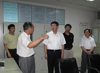 阴副院长一行在王焕玉书记的陪同下,检查了主楼中控室、放射源库房、变电站、计算中心等重点要害部位。在计算中心,陈和生所长和计算中心副主任孙功星介绍了我所计算机网格国际合作以及网络管理和网络安全等。