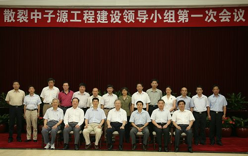 国家重点科学工程项目中国散裂中子源工程领导小组第一次会议8月21日上午在广州举行,全国人大常委会副委员长、中国科学院院长、中国散裂中子源工程建设领导小组组长路甬祥,广东省人民政府省长、工程领导小组副组长黄华华等出席了会议。