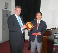 8月31日上午,中科院纳米生物效应与安全性重点实验室在高能所举行聘任仪式,聘任美国加州大学洛杉矶分校Andre E. Nel教授为中科院外籍特聘教授。30日晚上,白春礼常务副院长宴请了Andre E. Nel教授和一起来访的加州大学纳米系统研究所所长、著名国际学术刊物ACS NANO 的主编Paul Weiss教授,并藉此向Andre E. Nel教授颁发了路甬祥院长签发的聘任证书。
