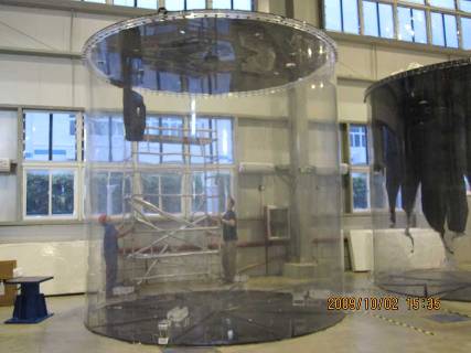 早上八点钟,装配大厅里面开始忙碌起来,你看,北边的工人正架设高梯,他们将要检查从美国运到的有机玻璃罐是否有瑕疵;半洁净间的工人正在仔细冲洗着PMT(光电倍增管)支撑结构,这个部件可是要进入探测器的内部,要求一尘不染呀;深藏在地下隧洞里面刚刚完工的5号实验大厅,今天也迎来了它的第一批访客——液闪混制罐。还有远在漳州、中山、青岛、南京的大亚湾项目的驻厂人员,为了能生产出高质量的探测器部件而辛勤工作着!