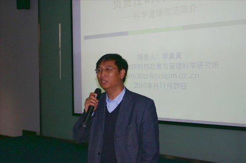 11月29日下午,高能所团委2010年“青年成长论坛——科研道德讲座”在主楼A214举行,来自中科院政策所的李真真研究员为大家带来科研道德规范的精彩报告。所党委书记王焕玉出席会议,全所各研究室、管理部门的近200名研究生、青年职工参加了讲座。