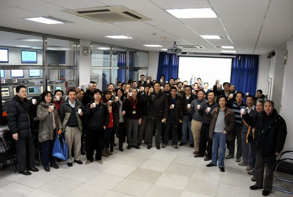 12月27日早晨,高能所领导与加速器中心和实验物理中心的同志们,在中控室召开了小型庆祝会,举杯共庆BEPCII亮度提高。