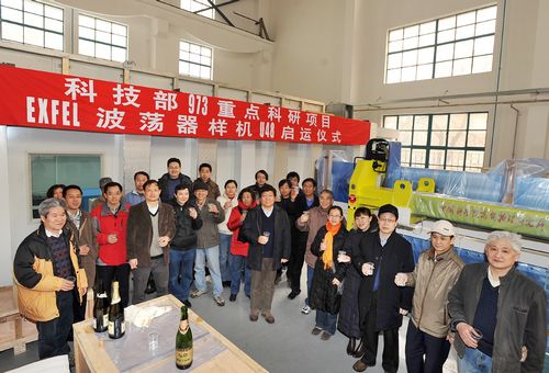 王焕玉和姜晓明打开代表喜悦的香槟,大家共同举杯,齐声祝愿U48样机前往德国DESY的旅程“一路平安”。