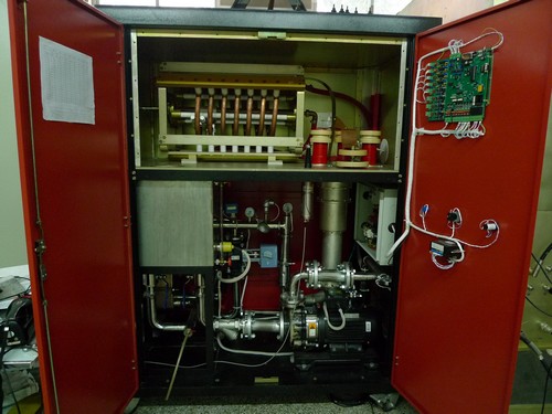 大功率变阻值调谐式假负载,通过对液体电阻溶液浓度和温度的精确控制得到稳定的阻值,能方便实现工作频段内与射频功率源的匹配。液体大功率调谐式假负载满足了射频功率源在整个工作频带内的高功率测试要求,其变阻值、可调谐设计属国内首创。