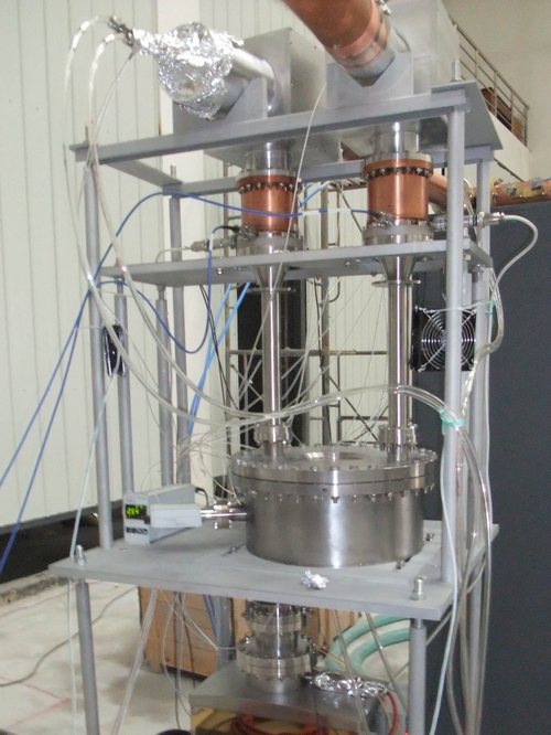 测试专家组听取了课题组所做的测试报告,对测试方法进行了讨论和认定,并进行了现场测试;验收专家组听取了课题组所做的总体介绍、验收报告以及测试专家组的测试报告。随后,验收专家组进行了详细的询问和热烈的讨论,认为162.5-MHz HWR 超导腔高功率输入耦合器是ADS质子加速器注入器II射频超导加速器系统中的关键部件之一,高能所研制的耦合器于 2012年7月通过充分老练,测试功率达到了连续波20kW,超过了ADS注入器II HWR腔耦合器的设计要求,可投入实际使用。这一成果填补了这一频段高功率耦合器的国内空白,并且,该耦合器所达到的功率水平在该频段上也是目前世界上最高的。