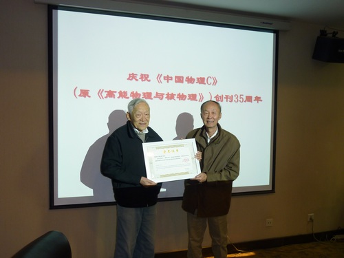 会议为李政道教授颁发特别荣誉奖,以彰显他对于《中国物理C》作出的杰出贡献。为邢志忠教授和黄燕萍、金山教授(代表BES合作组)颁发优秀论文奖,以表彰他们将重要的物理成果发表在中国自己的刊物《中国物理C》上。