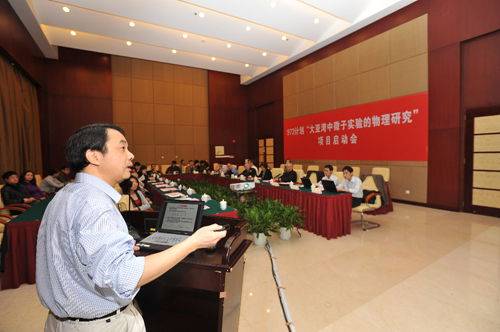 会议由中科院基础局大科学装置办公室副主任吴钰主持。科技部基础司、条财司,深圳市创新委等相关部门领导,中国原子能院王乃彦院士、张焕乔院士,高能所陈和生院士等出席项目启动会。高能所所长、首席科学家王贻芳首先致欢迎辞,他代表项目承担单位和课题承担单位,对科技部等相关部门长期以来的支持表示感谢。王贻芳宣布了973项目专家名单,向出席会议的项目专家颁发了聘书,并代表项目组汇报了项目研究思路、目标及主要研究内容。