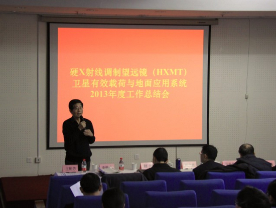 12月30日下午,“硬X射线调制望远镜(HXMT)卫星有效载荷与地面应用系统2013年度工作总结会”在我所召开。 来自航科集团宇航部、航天五院、清华大学、北京师范大学,中科院重大任务局、空间中心、高能所的领导和相关参研人员共百余人参加会议。HXMT卫星首席科学家助理张双南研究员主持了会议。会议听取了HXMT卫星有效载荷、地面应用系统科学应用部分和任务支持部分(空间中心承担)的年度工作进展汇报及下年度工作安排。