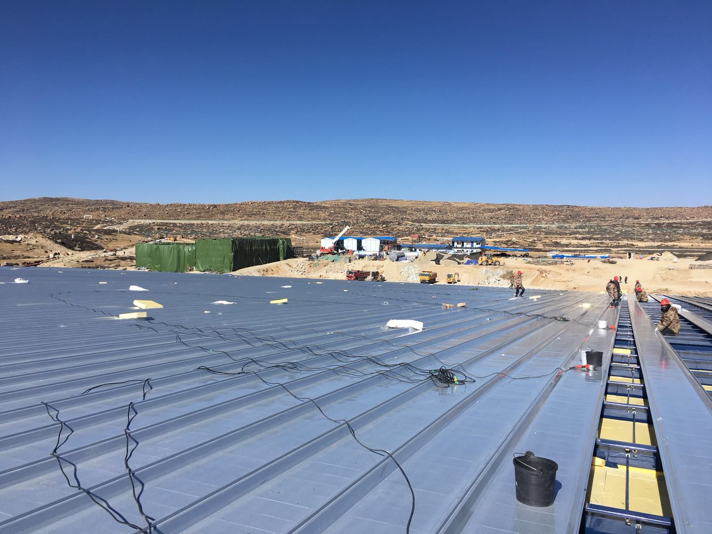 2月1日,在凛冽的寒风中,高海拔宇宙线观测站水切伦科夫探测阵列(WCDA)2.25万平方米的一号水池封顶,进入探测器内部安装阶段。