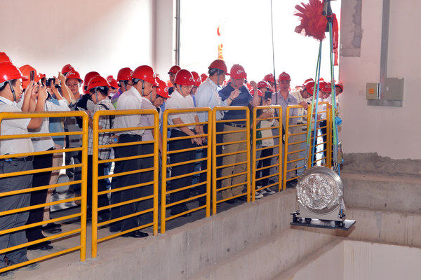 上午10:15,设备吊装准备就绪。陈和生院士对来宾们的到来表示热烈的欢迎,对广东省、东莞市和大朗镇对散裂中子源项目的支持表示感谢,并鼓励全体建设人员继续全力以赴,力争2018年按时保质保量地完成项目的建设。