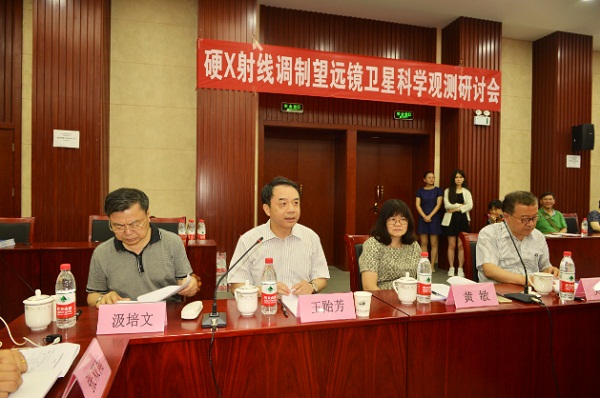 6月23日,硬X射线调制望远镜(HXMT)卫星科学观测研讨会在中科院高能所举行。国家自然科学基金委数理学部汲培文研究员,中科院前沿科学与教育局黄敏副局长,国家空间科学中心主任、空间科学先导专项负责人吴季研究员,中科院院士李惕碚、陈建生、周又元、顾逸东,以及北京大学、清华大学、南京大学等全国各地15个高校,国家天文台、上海天文台、新疆天文台、紫金山天文台、云南天文台等7个研究机构的天文学者100余人参加了此次研讨会。