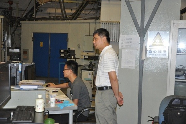 4W1A-X射线成像实验站值班人员与用户正在收集实验数据