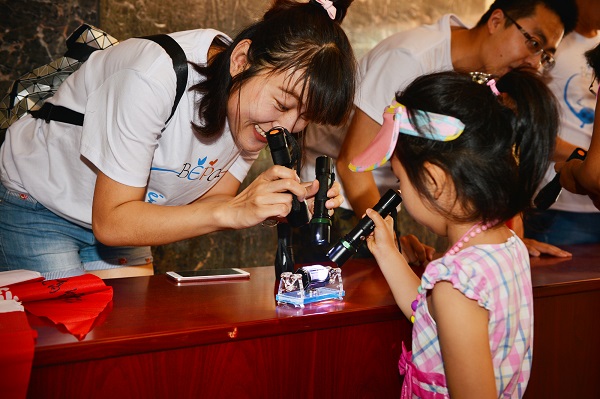 此外,高能所还向公众开放了包括北京正负电子直线加速器、储存环、北京谱仪、计算中心、北京同步辐射装置、博展馆等北京玉泉路园区部分工作区域;职工Tamer Tolba带领研究生为公众奉上了四个有趣的科学小实验:用光测头发丝直径、“看见”宇宙线、特斯拉线圈和门多西诺电机。参与的公众不仅可以动手参与实验,还能得到一份粘贴有自己的头发丝并有实验人员签字的小证书。