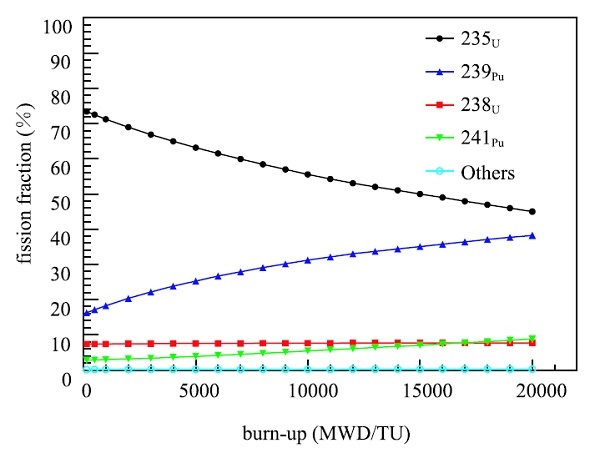 反应堆一般以恒定的功率发电。每次裂变时,这四种同位素释放的能量都差不多,但释放的中微子数目和能量则不一样。因此,随着核燃料成份的演化,反应堆释放的中微子数目和能量分布将会发生变化。