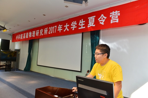 陈子林代表营员发言,他表示非常高兴能够有机会与来自全国各高校的优秀学生共同学习交流,期待在接下来的活动中可以享受知识的盛宴并收获到友谊。高年级学生代表魏占辰分享了在高能所学习和生活的点点滴滴,祝愿学弟学妹们在高能所度过轻松愉快、收获颇丰的一周时光。