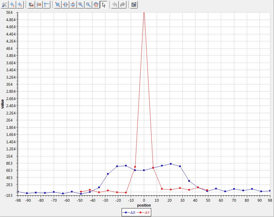 中子靶前的束流剖面测量装置测量的实时束流剖面,位置和分布均满足中子靶的要求