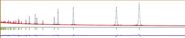 本次实验样品为锂离子电池新材料,衍射数据如下图所示。初步精修获得的可靠性因子Rp=1.81,Rwp=2.76,证明了数据的高质量和可靠性。通过结构精修的结果初步确定了该锂离子电池材料中较轻的锂与氧原子的位置和占位,与材料元素分析结果以及理论结构模型吻合。