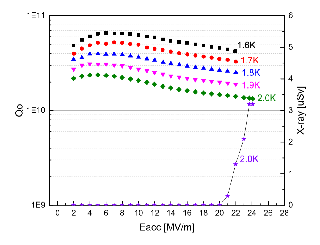 1.3GHz 1-cell超导腔完成了2.0K~1.6K温区的测试:加速梯度Eacc达到22.0MV/m时,Q0分别为1.4x1010(2.0K)和4.2x1010(1.6K)。在高能所以往研制的基础上又取得了新的进展。
