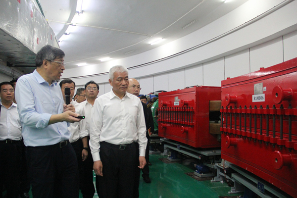 随后,王志刚一行赴现场参观了直线加速器、快循环同步加速器、加速器中央控制室以及靶站谱仪大厅。参观过程中,他详细了解了CSNS各项设备的原理和设计加工制造情况,高度评价了CSNS的工程建设和设备的国产化率,强调要“用好”这项大科学装置,充分发挥它的作用。