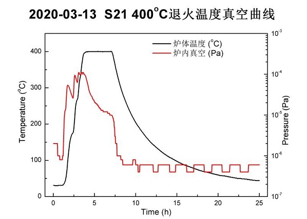 图1 中温退火工艺的温度与真空曲线
