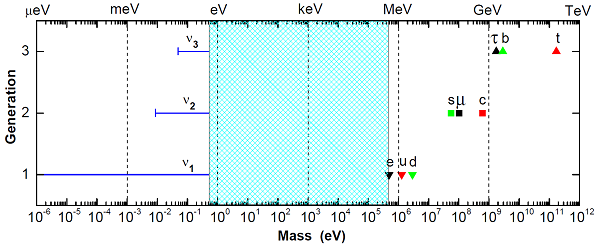 在粒子物理学的标准模型中,与轻子和夸克质量、味混合以及CP破坏效应相关的自由参数超过20个,其数值完全依赖实验测量,而理论本身对此毫无预言能力。特别是在大亚湾反应堆中微子振荡实验精确测量了最小的轻子味混合角θ13之后,如何理解基本费米子的质量谱具有至少12个数量级的跨度,而且电中性的中微子与带电费米子之间存在跨度达到6个数量级的“沙漠”(如图所示),以及轻子味混合模式与夸克味混合模式之间的显著差异等基本问题,成为国际粒子物理学研究前沿的重要热点课题。