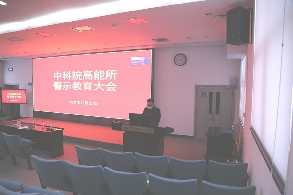 为深入推进党风廉政建设和反腐败工作,提高党员干部拒腐防变能力,12月25日下午,中科院高能所召开警示教育大会。高能所党委书记魏龙主持会议,高能所党委副书记、纪委书记罗小安作专题报告,副所长卢方军出席会议。本次会议在东莞设立分会场,同时开设网络视频会场。