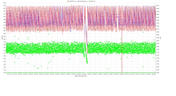 高能量对撞取数,无论是对硬件还是对运行模式都提出了很高的挑战。为了保证全能量注入,直线加速器的速调管都要全负荷运行,没有备份,为了降低故障率,相关运行与维护人员在节前就进行了全面仔细的维护;磁铁线圈温度处于高位,电源也运行在高位,需要运行人员时时巡检注意;加速器物理和运行人员采用了局部补偿超导四极磁铁强度的新模式,快速调试,两天内完成了模式校正、耦合校正、注入优化和亮度优化等,对撞峰值亮度和谱仪本底控制水平都达到了运行要求。