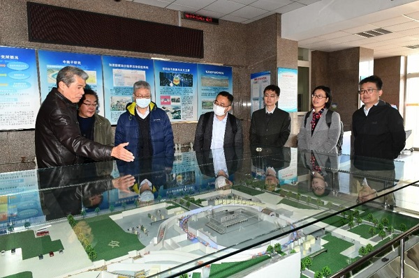 签约仪式后,汪鹏飞一行在潘卫民、超导磁体组组长徐庆金等陪同下参观了位于加速器大厅的北京正负电子对撞机模型和高能所超导厅80L/h氦液化器示范应用现场。