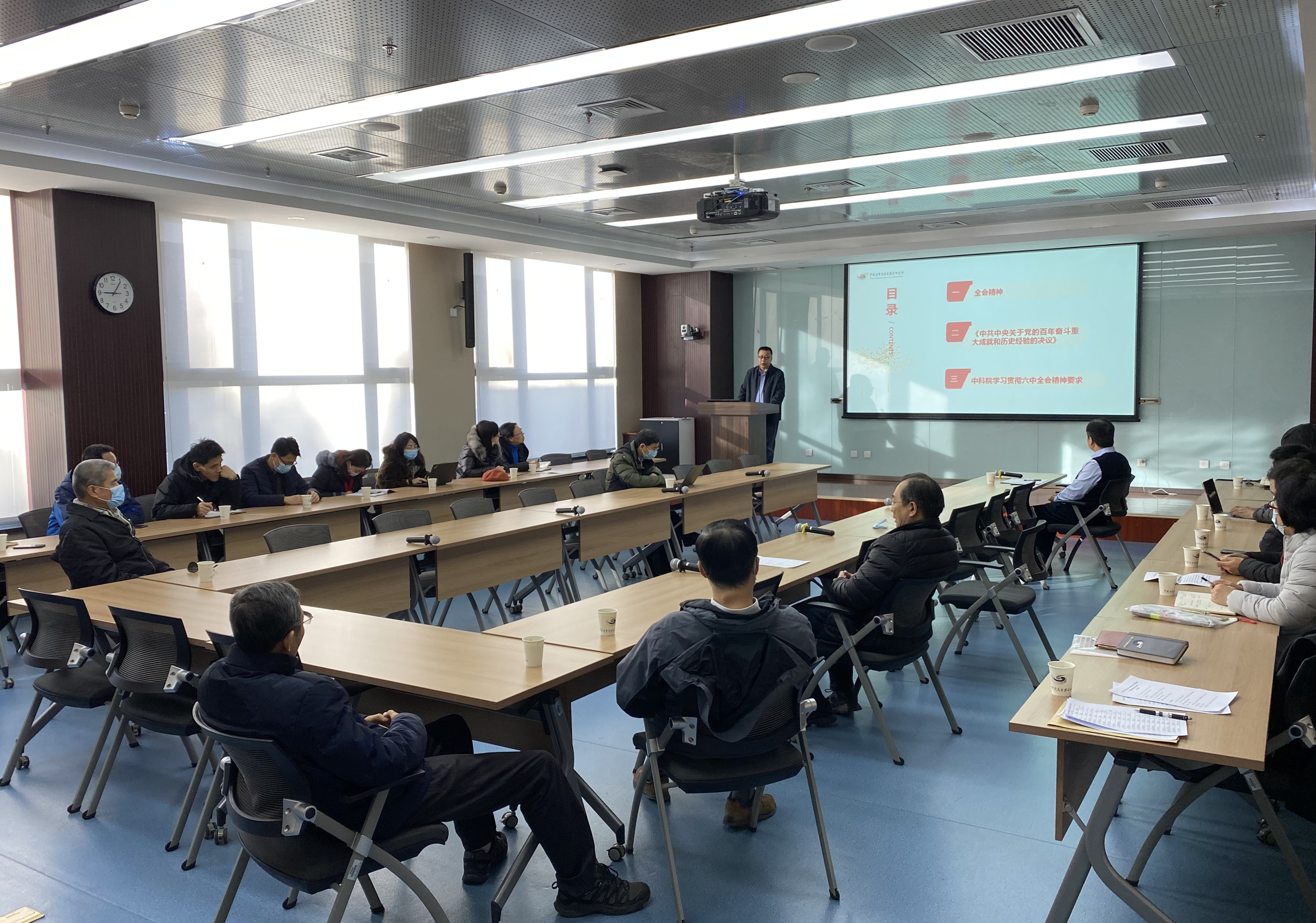 两次会上,党委书记魏龙、副所长董宇辉分别做了深入学习十九届六中全会精神和中科院基础研究工作会议精神的专题报告。