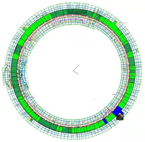 HEPS项目占地976亩,建筑规模约12.5万平方米,其中储存环隧道周长1360.4m,墙体厚度0.7m-1m不等,顶板厚度0.8m-1.9m不等,增强器隧道周长454.5米,其顶板厚度0.5m-1.7m不等,墙厚0.5m-1.9m不等。由于装置工艺的特殊性,对微振动、微沉降、精密温控、接地电阻、防辐射等方面要求高,施工难度大。为满足工艺需求,每一项基建施工内容都经过精心组织,通过编制方案、技术讨论、专家评审、实验验证、现场管控、纠偏纠错等环节,逐一解决技术和施工难题。