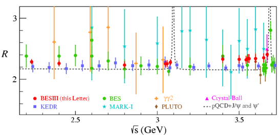 R值测量是BESIII实验最重要的研究工作之一。上一代北京谱仪BESII完成R值测量,把当时的精度提高了一倍左右;此次BESIII的R值测量,再次把精度提高了一倍左右,为粒子物理提供了精确的基础数据。