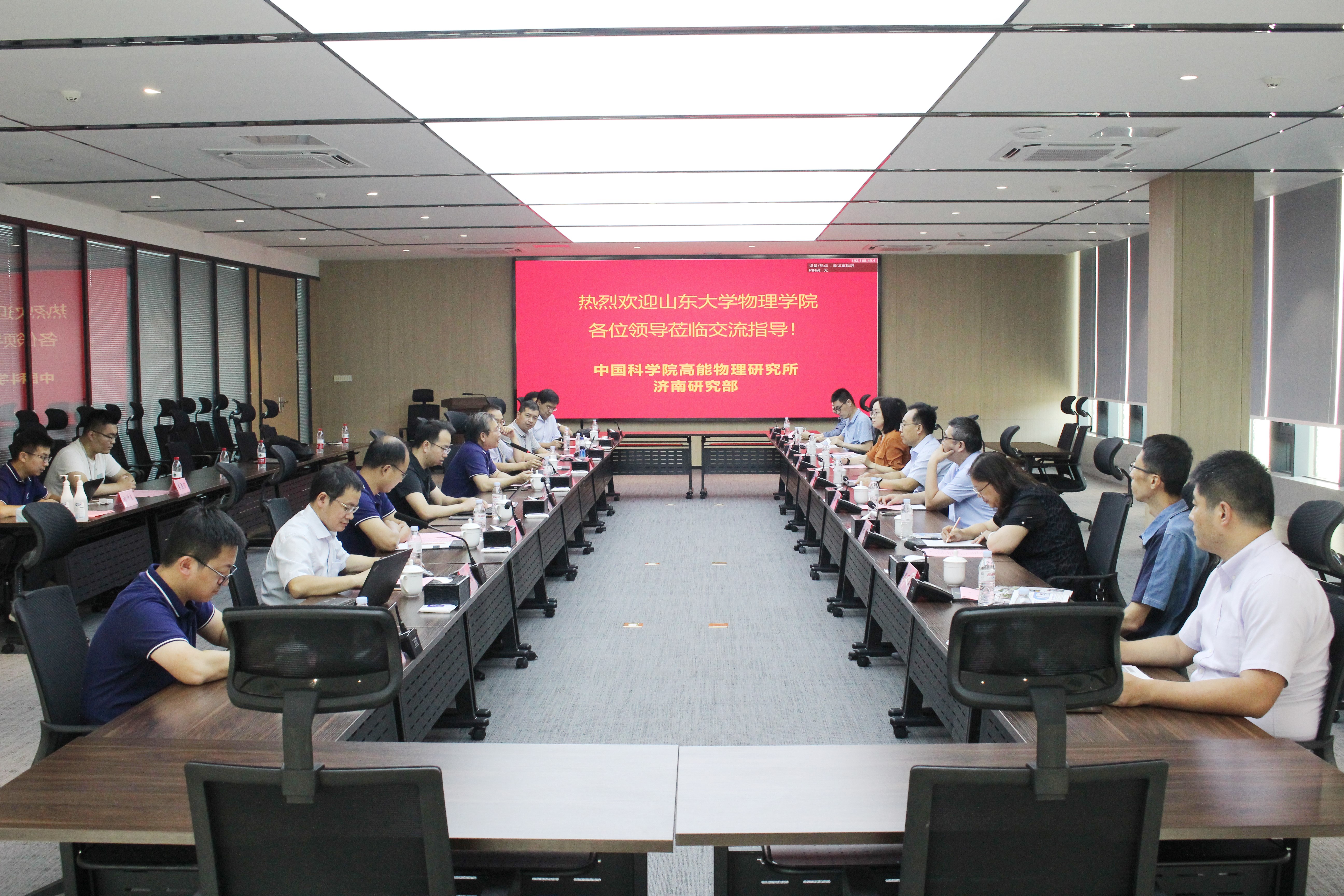 为进一步深化交流合作,促进产学研用多方融合, 8月23日,山东大学物理学院院长司宗国、党委书记郁鹏等党政班子一行9人到中科院高能物理研究所济南研究部参观考察,并座谈交流。中科院高能物理研究所副所长董宇辉、学位评定委员会主任常哲、济南研究部主任魏存峰等参加接待。