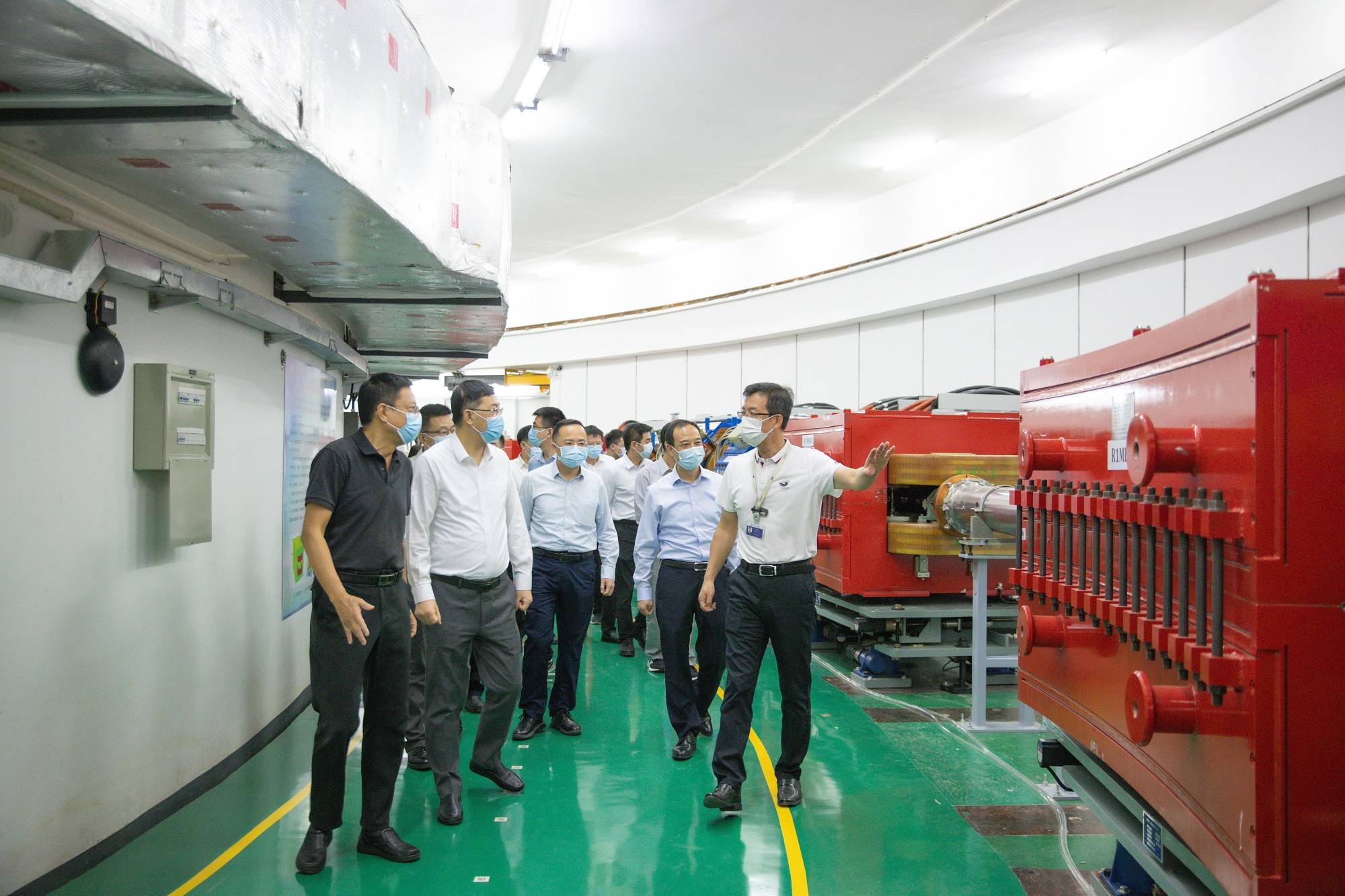 艾学峰一行参观了CSNS直线加速器、快循环质子同步加速器、靶站谱仪大厅以及南方光源研究测试平台等,详细了解了CSNS的基本情况、运行成果、用户群体、二期工程进展等,同时了解了南方先进光源预研及前期准备工作的进展情况。