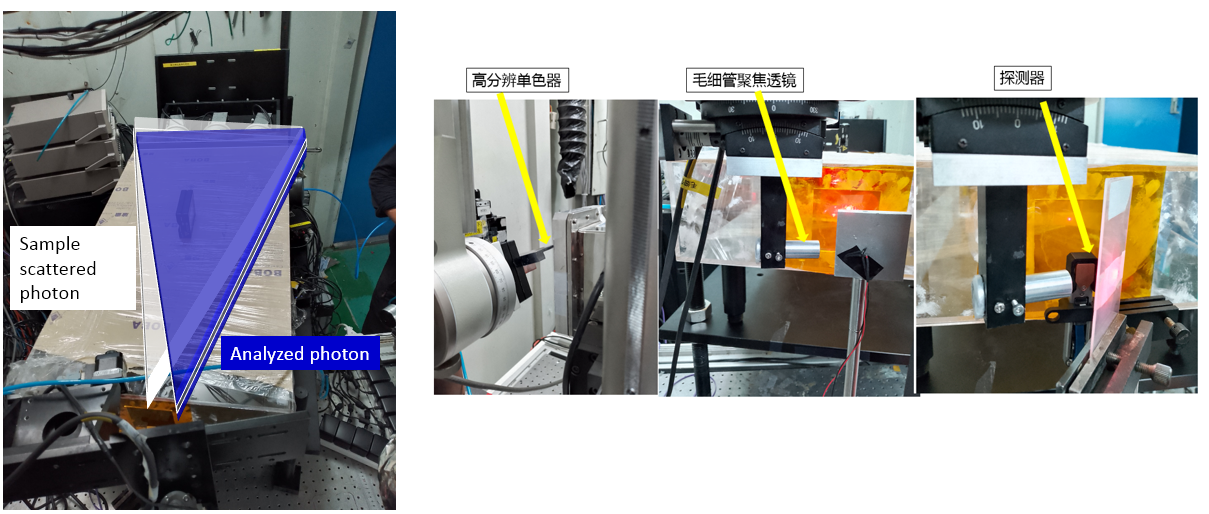 图2. 分析晶体测试装置,其中,左图给出了散射光和分析晶体分析光路示意图