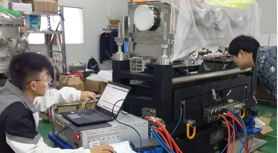 线下验收现场及人员(光机系统负责人汤善治和梁好、光机系统主要成员王建业和申大山、束线控制系统邓小宝和张典帅、上海三井总经理蒋罗荣)